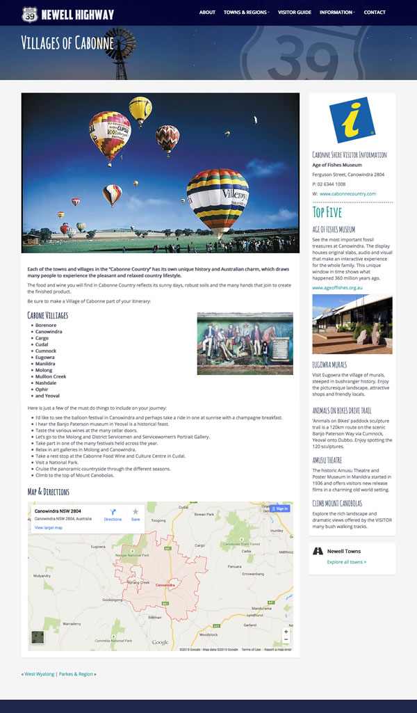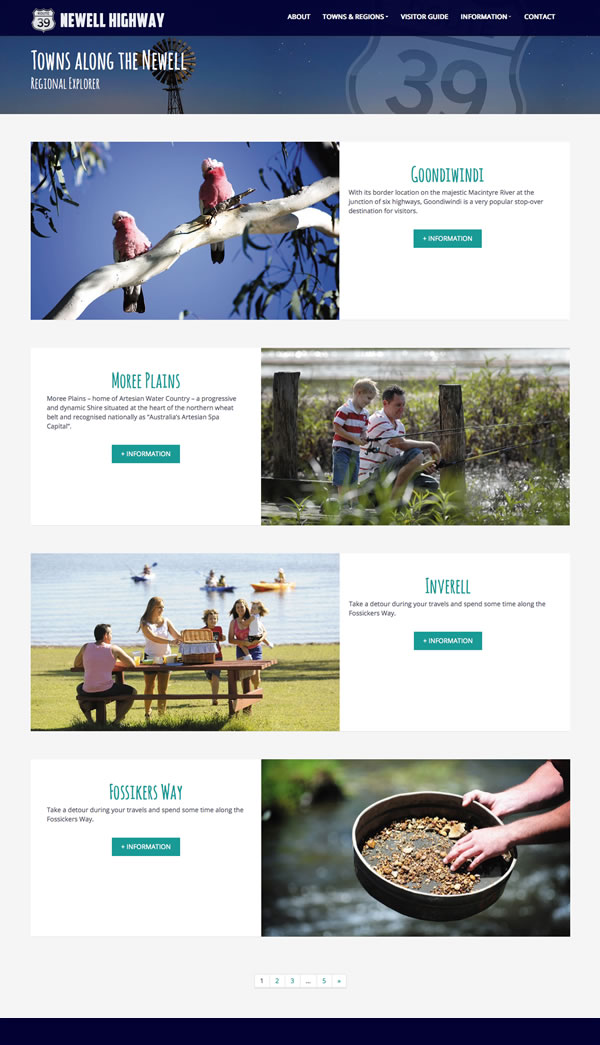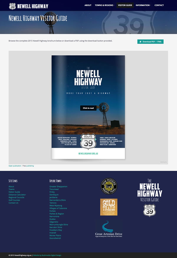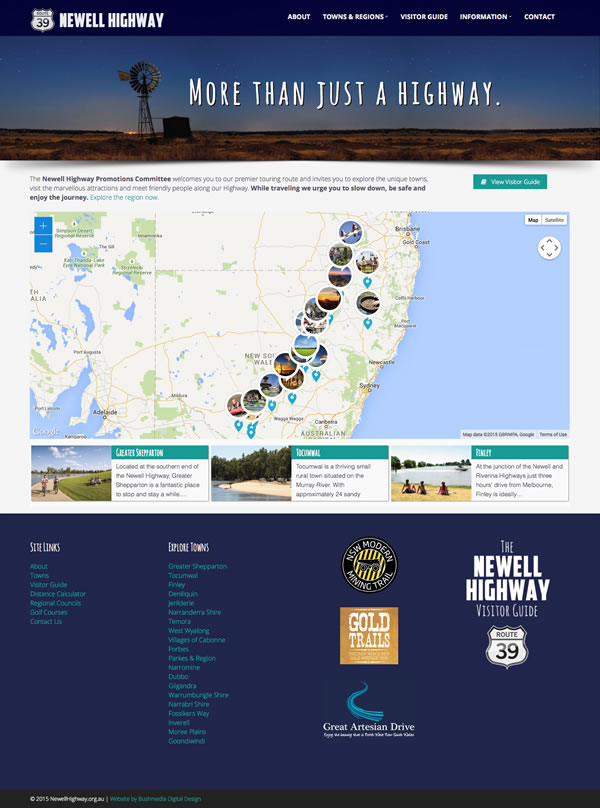 Bushmedia developed the original newellhighway.org.au website in 2009. The site was then developed as a companion marketing site for the Newell Highway visitor guide. In 2015 Bushmedia was engaged to redevelop a mobile responsive site which would reflect the design of the 2015 brochure.