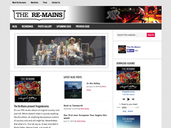Recently I have been doing my bit for the ‘Country Rock & Roll’ cause and donated some time as a favour to Mick Daley of The Re-mains. Mick was looking to update the Re-Mains website with a subscription service called ‘The Vault’ as a way of providing tracks currently unavailable on previously released albums.